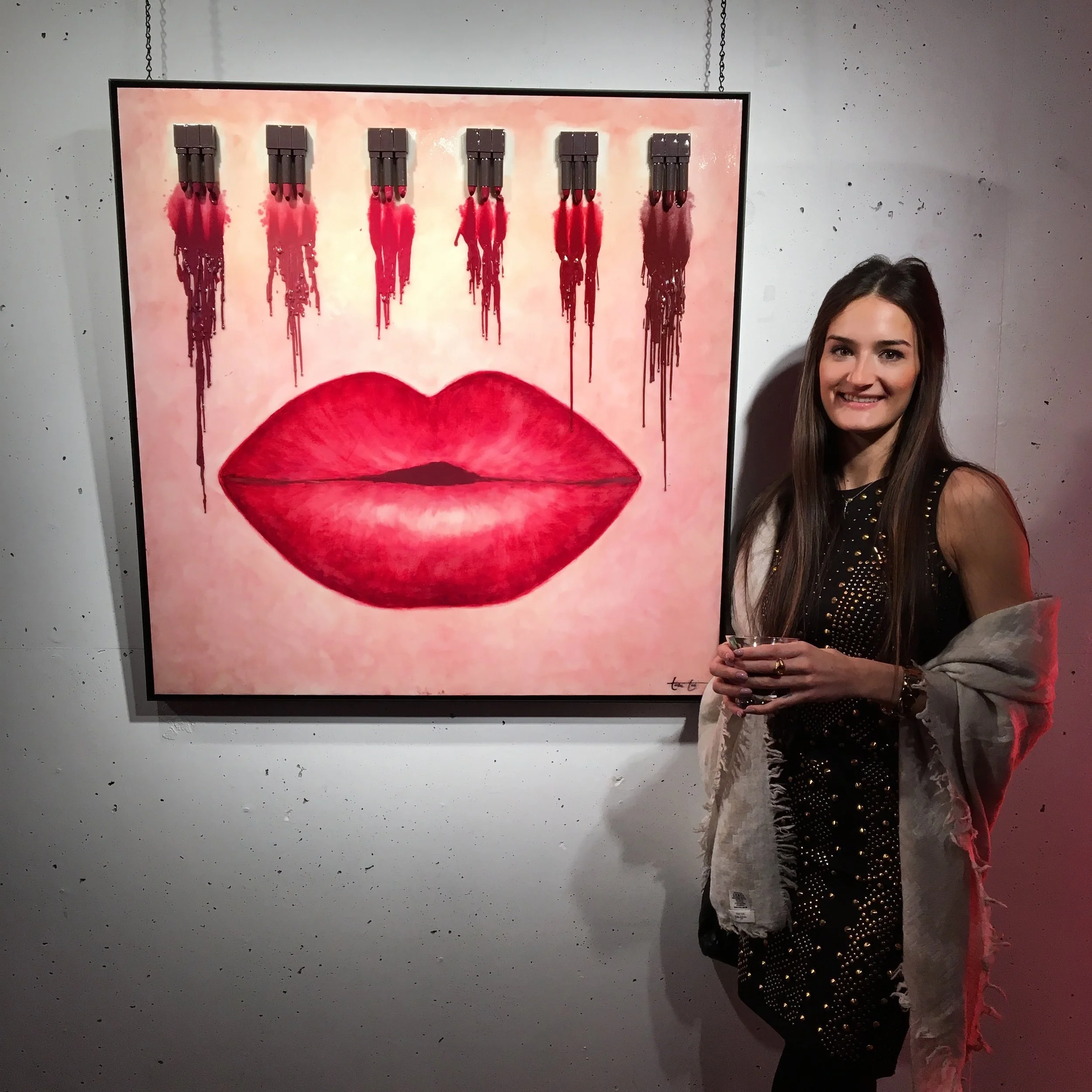 The Opening night for Burts Bees new lipstick launch was a success! I'm so grateful to have been one of the chosen artists to make a piece of art using their new lipsticks. All of the artists work will be auctioned off with proceeds going to the Wildlife Preservation Canada. My piece will be shown for the next two weeks at the Arta Gallery in Toronto’s Distillery District between February 27 & Mar 11, 3 – 8pm. Enjoy a FREE Admission & FREE Gift daily!